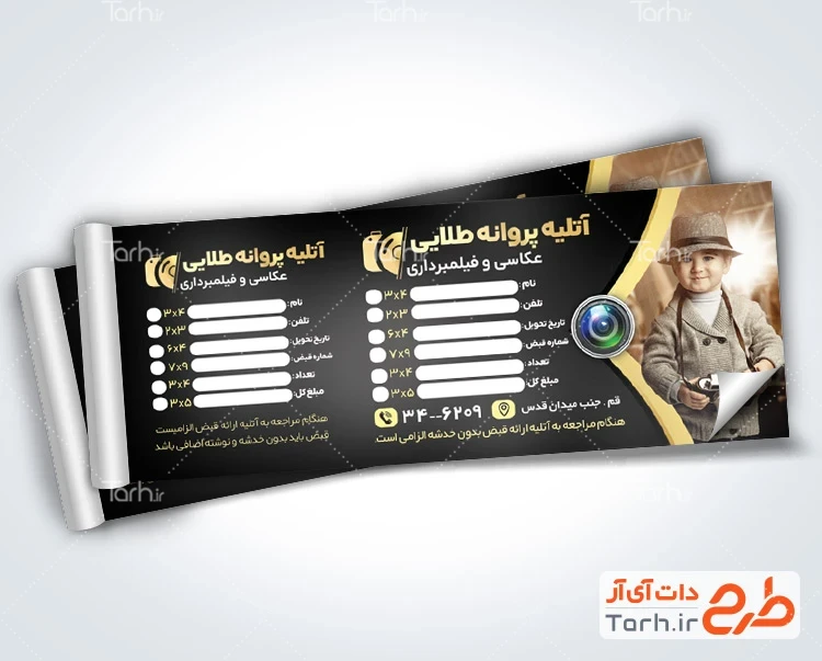 ابعاد قابل چاپ طرح لایه باز قبض رسید آتلیه عکاسی و کاربرد آن