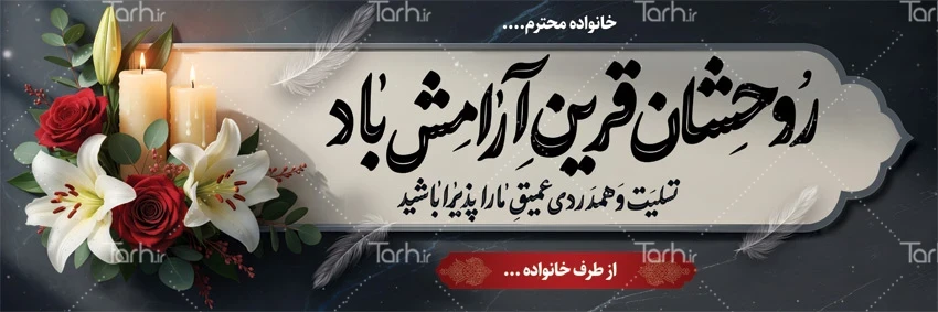 طرح پلاکارد تسلیت لایه باز با تایپوگرافی روحشان قرین آرامش باد کد فایل 9571203