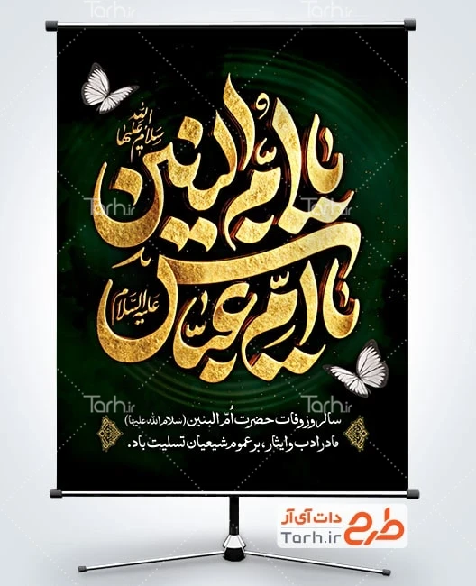 دانلود پوستر وفات حضرت ام البنین با فرمت psd و قابل ویرایش در نرم افزار فتوشاپ به صورت لایه باز توسط تیم طراحان طرح دات آی آر طراحی شده است. در طرح لایه باز وفات ام البنین از تصاویر و المان های با کیفیت و متناسب با استاندارد چاپ استفاده گردیده است. طرح بنر وفات حضرت ام البنین شامل تایپوگرافی یا ام عباس یا ام البنین و وکتور پروانه می باشد که المان های استفاده شده در بنر رحلت حضرت ام البنین قابلیت ویرایش، جابه جایی و تغییر سایز را دارا بوده و شما می توانید متناسب با سلیقه خودتان طرح وفات ام البنین را ویرایش نمایید.