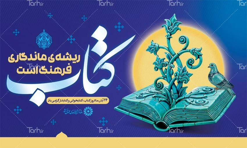فایل بنر هفته کتاب و کتابخوانی با متن کتاب ریشه ی ماندگاری فرهنگ است کد فایل 9620154