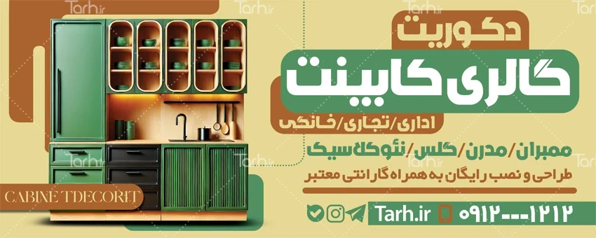 طرح بیلبورد تبلیغاتی کابینت سازی با فرمت psd و قابل ویرایش در نرم افزار فتوشاپ به صورت لایه باز توسط تیم طراحان طرح دات آی آر طراحی شده است. در طرح لایه باز بیلبورد تبلیغاتی کابینت سازی از تصاویر و المان های با کیفیت و متناسب با استاندارد چاپ استفاده شده، همچنین نکات مهم در تابلو سردر مغازه مانند رنگ بندی، رعایت حاشیه، فاصله ها، سایز و نوع فونت مناسب طراحی بنر جلو مغازه و ... رعایت گردیده است. طرح بنر کابینت شامل عکس کابینت آشپرخانه می باشد که المان های استفاده شده در طرح تابلو دکوراسیون داخلی قابلیت ویرایش، جابه جایی و تغییر سایز را دارا بوده و شما می توانید متناسب با سلیقه خودتان طرح بنر تبلیغاتی کابینت را ویرایش نمایید، همچنین با تغییر تصاویر و متن ها می توانید طرح تابلو کابینت سازی را به طرح تابلوی شغل مورد نظر خود تبدیل نمایید.
