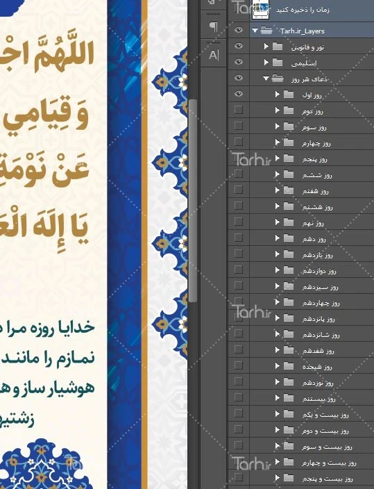 متن دعای سی روز رمضان در پوشه طرح موجود و چشم لایه آن خاموش شده است.