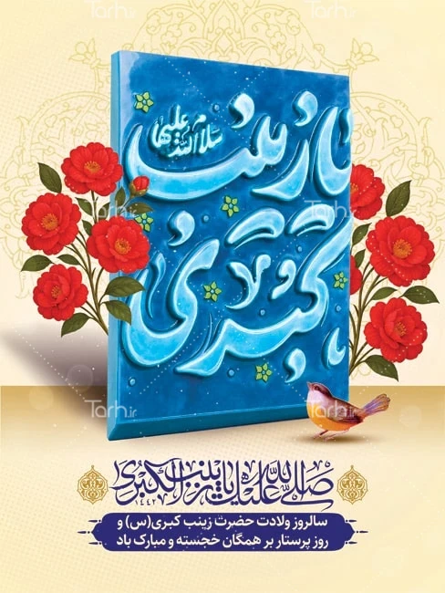 طرح لایه باز پوستر ولادت حضرت زینب با فرمت psd و قابل ویرایش در نرم افزار فتوشاپ به صورت لایه باز توسط تیم طراحان طرح دات آی آر طراحی شده است. در طرح لایه باز ولادت حضرت زینب از تصاویر و المان های با کیفیت و متناسب با استاندارد چاپ استفاده گردیده است. طرح لایه باز بنر میلاد حضرت زینب شامل خوشنویسی یا زینب کبری، وکتور گل و چراغانی می باشد که المان های استفاده شده در طرح خام ولادت حضرت زینب قابلیت ویرایش، جابه جایی و تغییر سایز را دارا بوده و شما می توانید متناسب با سلیقه خودتان طرح پوستر ولادت حضرت زینب را ویرایش نمایید.