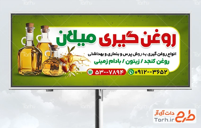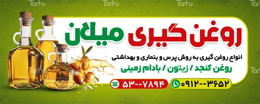 طرح لایه باز تابلو تبلیغاتی روغن گیری با فرمت psd و قابل ویرایش در نرمافزار فتوشاپ بهصورت لایه باز توسط تیم طراحان طرح دات آی آر طراحی شده است. در طرح لایه باز بنر روغنگیری و عصاری از تصاویر و المانهای باکیفیت و متناسب با استاندارد چاپ استفادهشده، همچنین نکات مهم در طرح لایه باز بنر مشاغل مانند رنگبندی، رعایت حاشیه، فاصلهها، سایز و نوع فونت مناسب طراحی تابلو مشاغل و ... رعایت گردیده است. طرح بنر روغن گیری شامل عکس شیشه روغن میباشد که المانهای استفادهشده در طرح تابلو عصاری و روغنگیری قابلیت ویرایش، جابهجایی و تغییر سایز را دارا بوده و شما میتوانید متناسب باسلیقه خودتان طرح بنر تبلیغاتی روغن گیری را ویرایش نمایید، همچنین با تغییر تصاویر و متنها میتوانید طرح تابلو روغن ارده و کنجد و عصاری را به طرح تابلوی شغل موردنظر خود تبدیل نمایید.