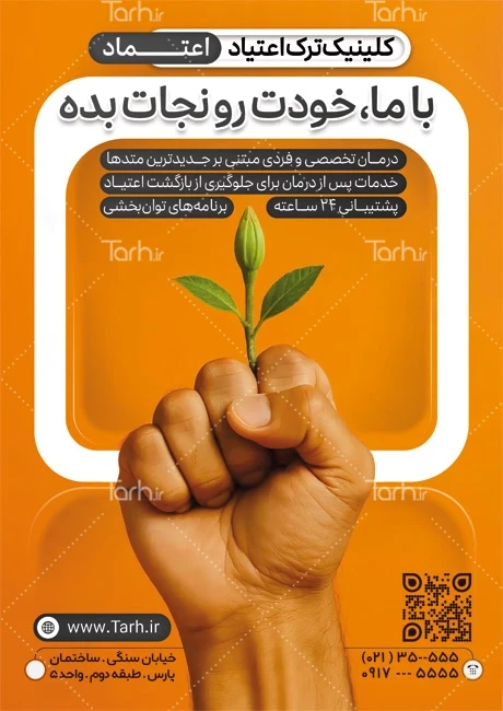 طرح تراکت کمپ ترک اعتیاد با فرمت psd و قابل ویرایش در نرمافزار فتوشاپ بهصورت لایه باز توسط تیم طراحان طرح دات آی آر طراحی شده است. در نمونه تراکت کلینیک ترک اعتیاد از تصاویر و المانهای باکیفیت و متناسب با استاندارد چاپ استفادهشده، همچنین نکات مهم در طرح تراکت کلینیک ترک اعتیاد مانند رنگبندی، رعایت حاشیه، فاصلهها، فضای کافی برای درج متن، سایز و نوع فونت مناسب طراحی تراکت و ... رعایت گردیده است. طرح لایه باز تراکت مرکز ترک اعتیاد شامل عکس دست و جوانه گیاه میباشد که المانهای استفادهشده در طرح تراکت کلینیک ترک اعتیاد قابلیت ویرایش، جابهجایی و تغییر سایز را دارا بوده و شما میتوانید متناسب باسلیقه خودتان تراکت لایه باز کلینیک ترک اعتیاد را ویرایش نمایید، همچنین با تغییر تصاویر و متنها میتوانید طرح تراکت ترک اعتیاد را به طرح تراکت کسب و کار مد نظر خود شخصی سازی نمایید.