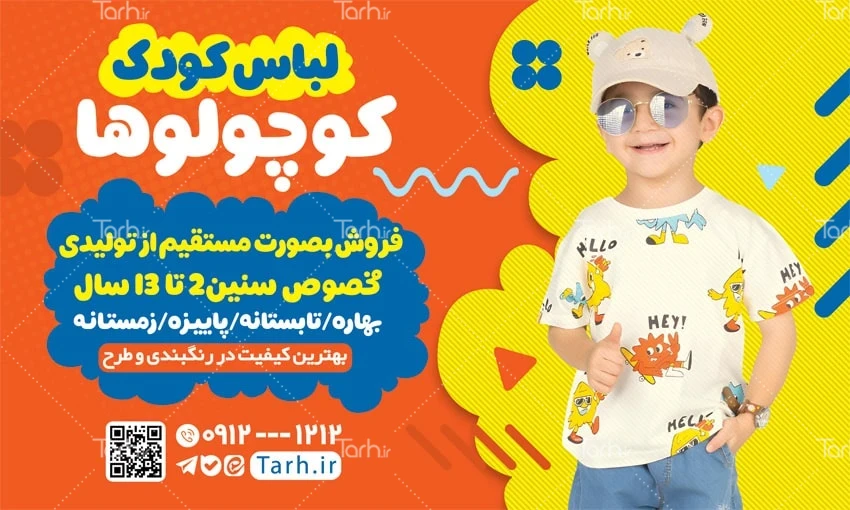 دانلود بنر پوشاک بچه گانه با فرمت psd و قابل ویرایش در نرمافزار فتوشاپ بهصورت لایه باز توسط تیم طراحان طرح دات آی آر طراحی شده است. در طرح لایه باز بنر فروشگاه لباس بچه گانه از تصاویر و المانهای باکیفیت و متناسب با استاندارد چاپ استفادهشده، همچنین نکات مهم در طرح بنر مغازه مانند رنگبندی، رعایت حاشیه، فاصلهها، سایز و نوع فونت مناسب طراحی تابلو مشاغل و ... رعایت گردیده است. طرح تابلو پوشاک کودکان شامل عکس کودک پسر میباشد که المانهای استفادهشده در طرح بنر فروشگاه لباس بچه گانه قابلیت ویرایش، جابهجایی و تغییر سایز را دارا بوده و شما میتوانید متناسب باسلیقه خودتان طرح بنر تبلیغاتی فروشگاه پوشاک بچه گانه را ویرایش نمایید، همچنین با تغییر تصاویر و متنها میتوانید طرح تابلو لباس بچه گانه را به طرح تابلوی شغل موردنظر خود تبدیل نمایید.