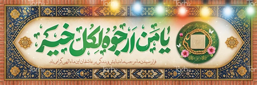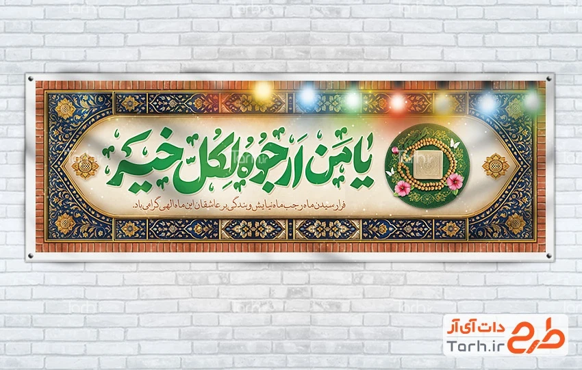 طرح بنر پلاکارد خام ماه رجب دارای تایپوگرافی یا من ارجوه لکل خیر کد فایل 9670835