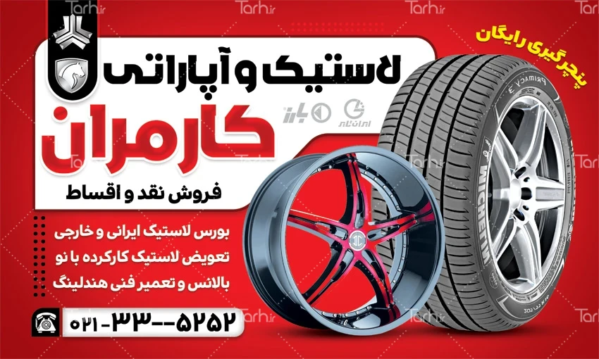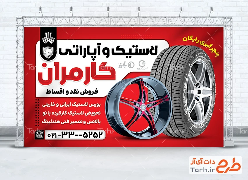 فایل لایه باز بنر لاستیک فروشی با تم قرمز کد فایل 9680345