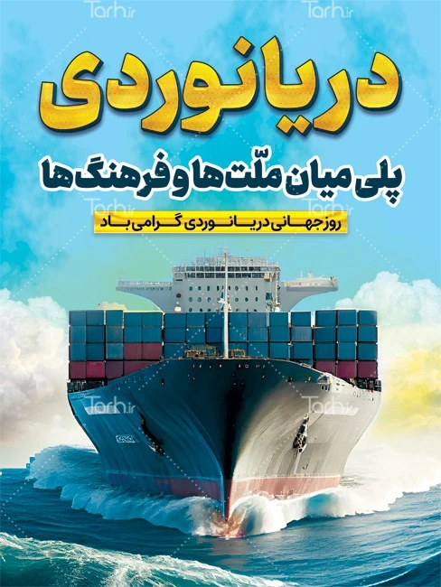 دانلود طرح بنر روز دریانوردی با فرمت psd و قابل ویرایش در نرم افزار فتوشاپ به صورت لایه باز توسط تیم طراحان طرح دات آی آر طراحی شده است. در دانلود طرح بنر روز جهانی دریانوردی از تصاویر و المانهای با کیفیت و متناسب با استاندارد چاپ استفاده گردیده است. طرح لایه باز روز دریانوردی شامل عنوان دریانوردی پلی میان ملت ها و فرهنگ ها و عکس کشتی تجاری می باشد. المانهای استفاده شده در طرح بنر روز دریانوردی قابلیت ویرایش، جابه جایی و تغییر سایز را دارا بوده و شما می توانید متناسب با سلیقه خودتان بنر لایه باز گرامیداشت روز دریانوردان را ویرایش نمایید.