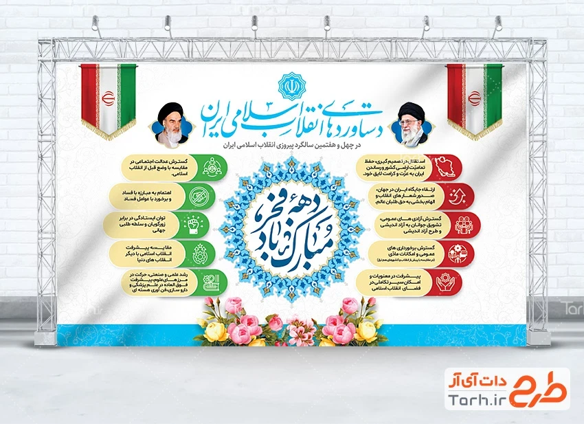 ابعاد قابل چاپ طرح لایه باز بنر دستاورد های انقلاب و کاربرد آن