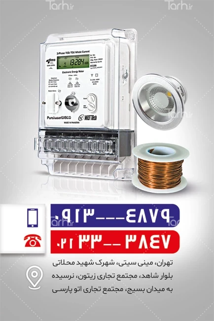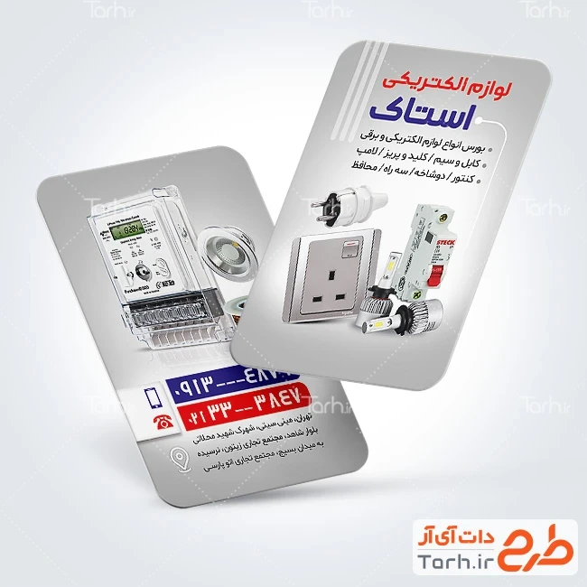 طرح خام کارت ویزیت فروشگاه لوازم الکتریکی با قابلیت ویرایش المان ها کد فایل 9704826