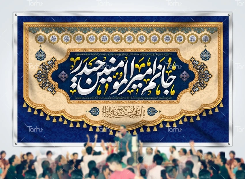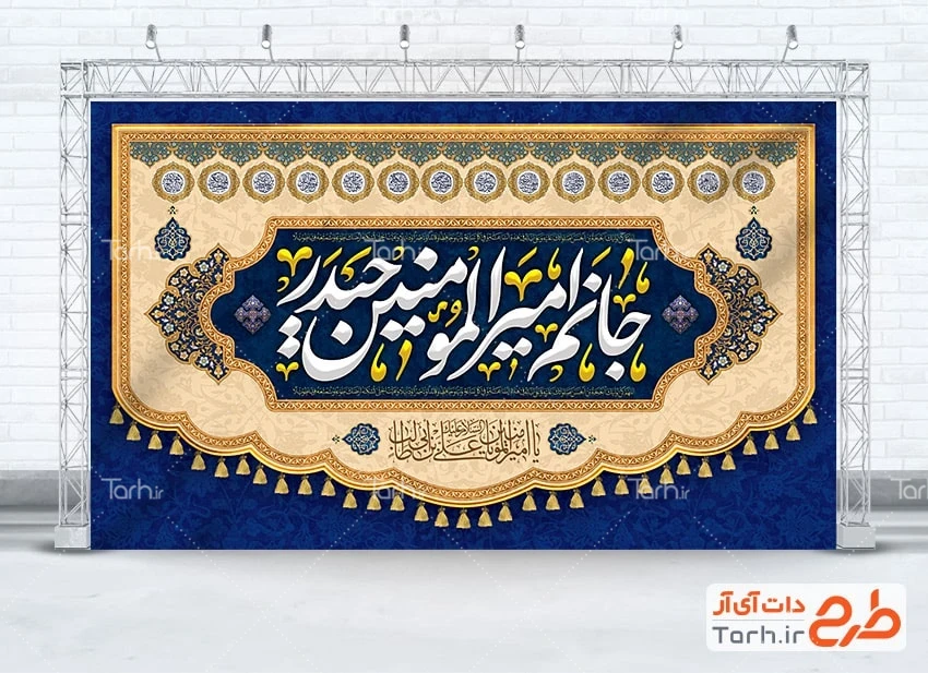 بنر جایگاه جشن میلاد امام علی با خوشنویسی جانم امیرالمومنین حیدر کد فایل 9715203