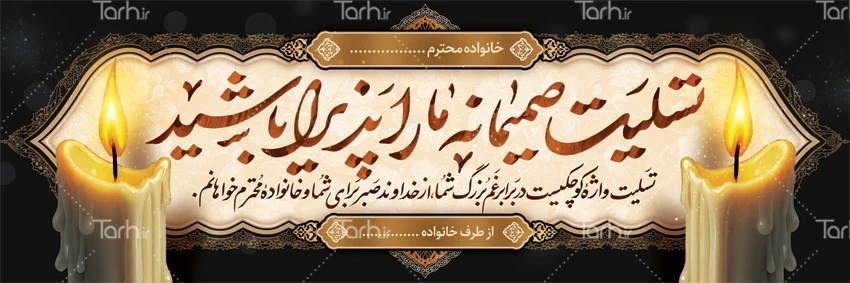 طرح قابل ویرایش بنر تسلیت با خوشنویسی تسلیت صمیمانه ما را پذیرا باشید کد فایل 9724861