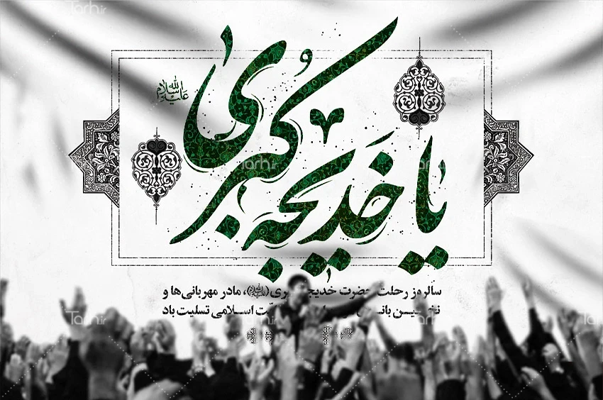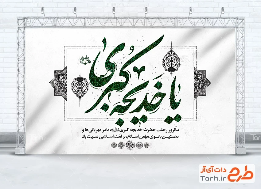 طرح بنر پشت سن وفات حضرت خدیجه با خوشنویسی یا خدیجه کبری کد فایل 9726438