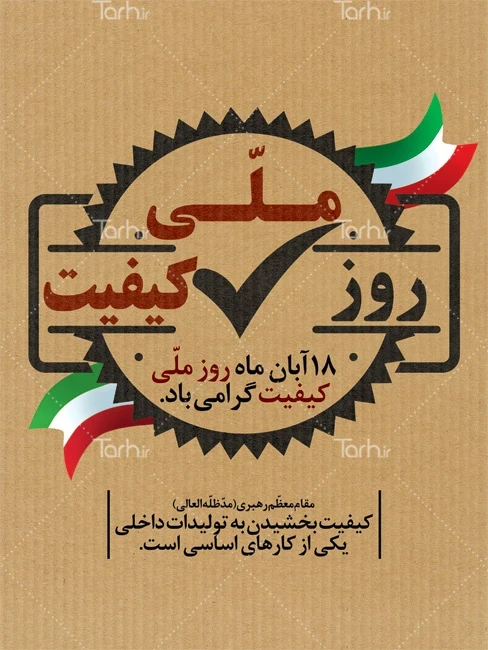 طرح لایه باز بنر روز کیفیت با فرمت psd و قابل ویرایش در نرم افزار فتوشاپ به صورت لایه باز توسط تیم طراحان طرح دات آی آر طراحی شده است. در طرح لایه باز روز ملی کیفیت از تصاویر و المان های با کیفیت و متناسب با استاندارد چاپ استفاده گردیده است. پوستر روز ملی کیفیت لایه باز شامل شامل وکتور پرچم ایران می باشد که المان های استفاده شده در بنر لایه باز روز ملی کیفیت قابلیت ویرایش، جابه جایی و تغییر سایز را دارا بوده و شما می توانید متناسب با سلیقه خودتان طرح بنر روز کیفیت را ویرایش نمایید.