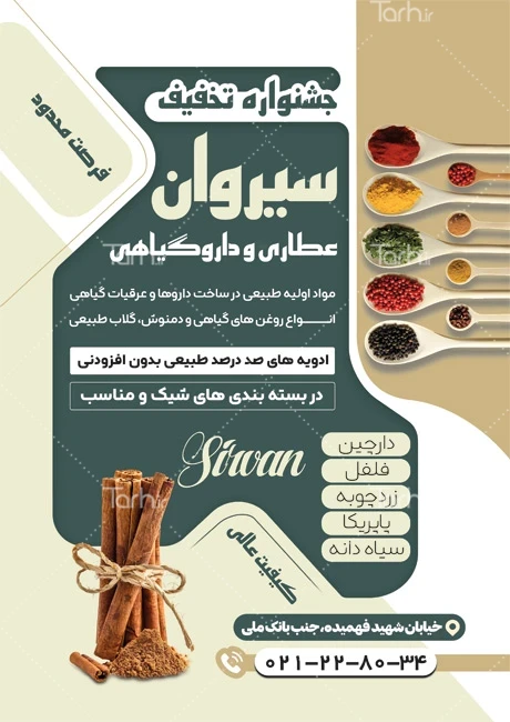 فایل لایه باز تراکت عطاری با عکس چوب دارچین کد فایل 9736281