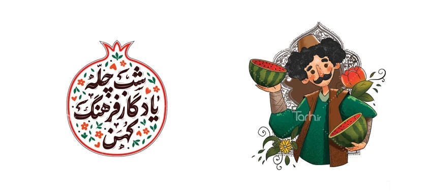 طرح لیوان یلدا شامل تصویرسازی مرد ایرانی کد فایل 9736420