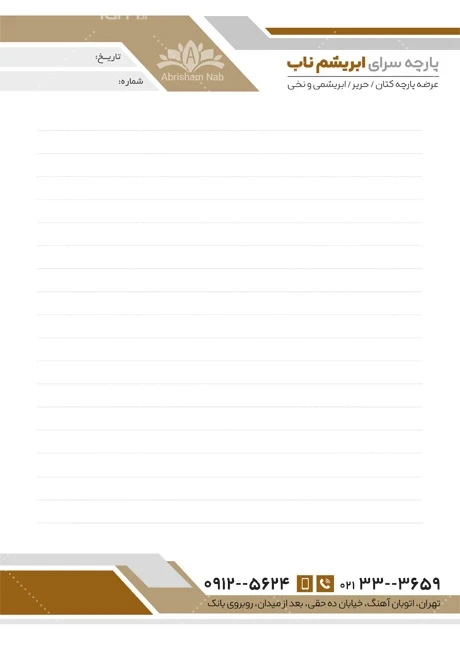 دانلود طرح سربرگ پارچه فروشی با فرمت psd و قابل ویرایش در نرمافزار فتوشاپ بهصورت لایه باز توسط تیم طراحان طرح دات آی آر طراحی شده است. در طرح لایه باز سربرگ پارچه فروشی از المانهای باکیفیت و متناسب با استاندارد چاپ استفادهشده، همچنین نکات مهم در طرح سربرگ خام پارچه فروشی مانند رنگبندی، رعایت حاشیه، فاصلهها، فضای کافی برای درج متن، سایز و نوع فونت مناسب طراحی سربرگ و ... رعایت گردیده است. سربرگ لایه باز پارچه سرا شامل وکتور لوگو شرکت میباشد که المانهای استفادهشده در نمونه سربرگ پارچه فروشی قابلیت ویرایش، جابهجایی و تغییر سایز را دارا بوده و شما میتوانید متناسب باسلیقه خودتان طرح سربرگ پارچه سرا را ویرایش نمایید، همچنین با تغییر لوگو و متنها میتوانید طرح سربرگ پارچه فروشی را به طرح سربرگ کسب و کار مد نظر خود شخصی سازی نمایید. در اسناد و نامههای اداری و تجاری، سربرگ به عنوان وسیلهای برای نمایش اطلاعاتی مانند نام و لوگو یک شرکت یا سازمان، عنوان سند، تاریخ، شماره صفحه و اطلاعات تماس ( شماره تلفن، آدرس پستی، وبسایت و ایمیل) به کار میرود. این اطلاعات به دریافتکننده کمک میکند تا به راحتی با شرکت یا سازمان تماس بگیرد یا از منابع اطلاعاتی بیشتری بهرهبرداری کند.