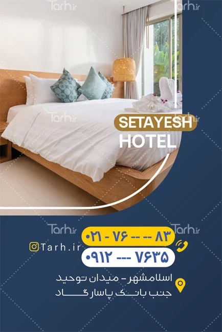 کارت ویزیت تبلیغاتی هتل با فرمت psd در نرمافزار فتوشاپ بهصورت لایه باز و پشت و رو (دو رو) توسط تیم طراحان طرح دات آی آر طراحی شده است. طرح کارت ویزیت هتل از تصاویر و المانهای باکیفیت و متناسب با استاندارد چاپ استفادهشده، همچنین نکات مهم در طرح کارت ویزیت مانند رنگبندی، رعایت حاشیه، فاصلهها، فضای کافی برای درج متن، سایز و نوع فونت مناسب طراحی کارت ویزیت و ... رعایت گردیده است. نمونه کارت ویزیت مسافرخانه شامل عکس هتل و برج میباشد که المانهای استفادهشده در طرح کارت ویزیت مهمان سرا قابلیت ویرایش، جابهجایی و تغییر سایز را دارا بوده و شما میتوانید متناسب باسلیقه خودتان کارت ویزیت لایه باز هتل را ویرایش نمایید، همچنین با تغییر تصاویر و متنها میتوانید طرح کارت ویزیت مهمانسرا را به طرح کارت ویزیت کسب و کار مد نظر خود شخصی سازی نمایید.