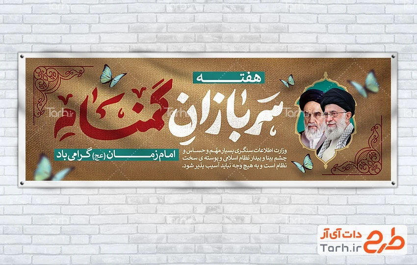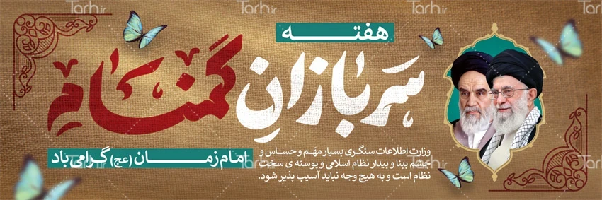 طرح لایه باز پلاکارد هفته سربازان گمنام امام زمان با تایپوگرافی سربازان گمنام کد فایل 9802471