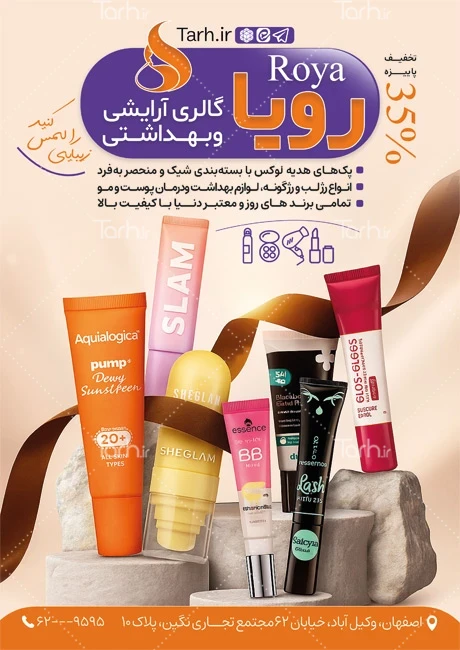 دانلود تراکت لایه باز لوازم آرایشی با فرمت psd و قابل ویرایش در نرمافزار فتوشاپ بهصورت لایه باز توسط تیم طراحان طرح دات آی آر طراحی شده است. در نمونه تراکت لوازم آرایشی از تصاویر و المانهای باکیفیت و متناسب با استاندارد چاپ استفادهشده، همچنین نکات مهم در طرح تراکت لوازم آرایشی مانند رنگبندی، رعایت حاشیه، فاصلهها، فضای کافی برای درج متن، سایز و نوع فونت مناسب طراحی تراکت و ... رعایت گردیده است. طرح لایه باز تراکت لوازم آرایشی و بهداشتی شامل عکس لوازم آرایشی میباشد که المانهای استفادهشده در طرح پوستر لوازم آرایشی قابلیت ویرایش، جابهجایی و تغییر سایز را دارا بوده و شما میتوانید متناسب باسلیقه خودتان تراکت لایه باز لوازم آرایشی را ویرایش نمایید، همچنین با تغییر تصاویر و متنها میتوانید طرح تراکت فروشگاه لوازم آرایشی را به طرح تراکت کسب و کار مد نظر خود شخصی سازی نمایید.