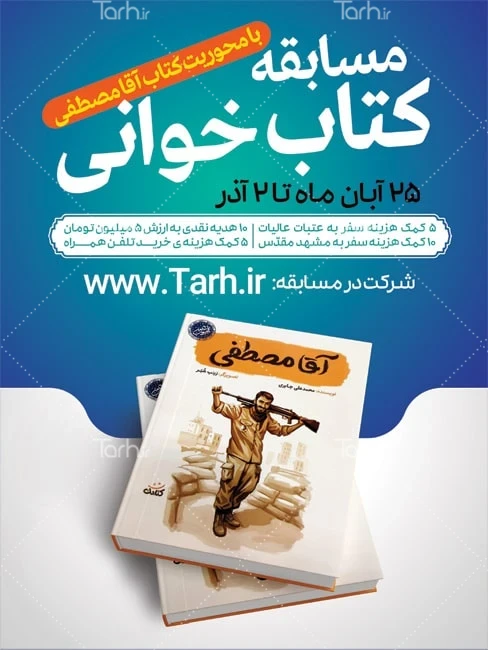 پوستر خام مسابقه کتابخوانی با عکس کتاب آقا مصطفی کد فایل 9825130