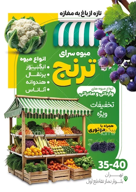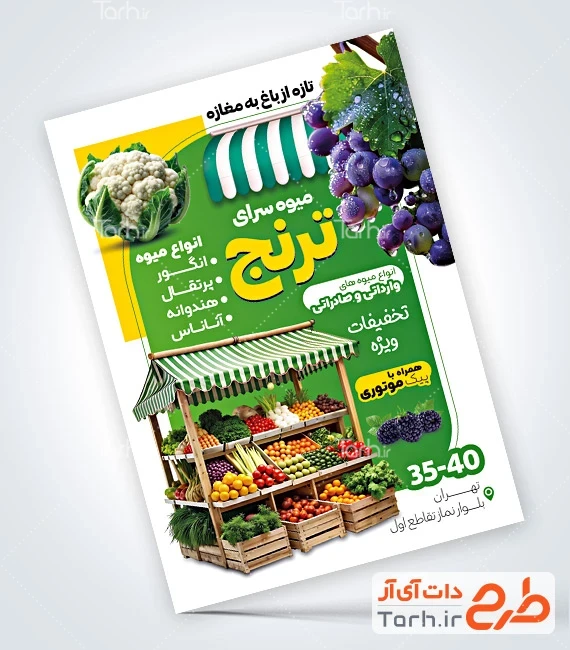 نمونه تراکت آماده میوه فروشی با عکس میوه کد فایل 9832647