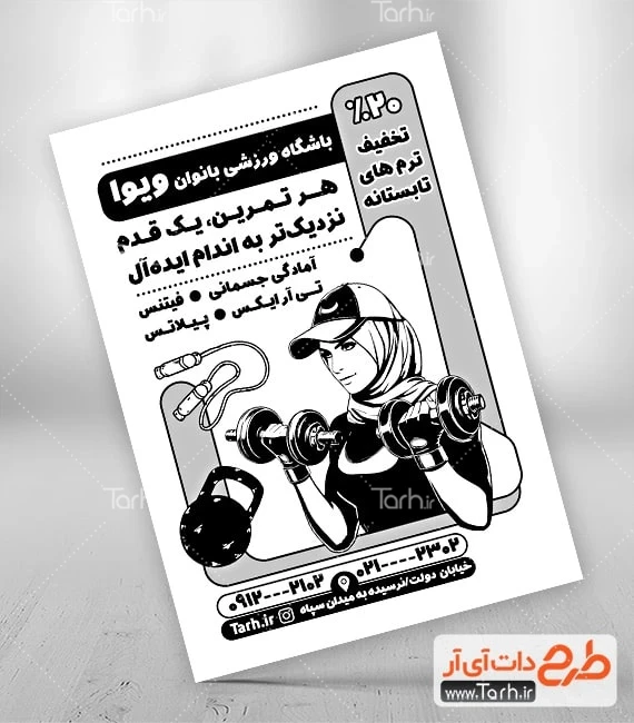 ابعاد قابل چاپ تراکت سیاه سفید باشگاه ورزشی بانوان و کاربرد آن