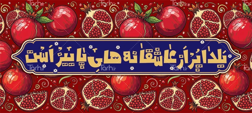 طرح لایه باز ماگ یلدا شامل متن یلدا پر از عاشقانه های پاییز است کد فایل 9836720
