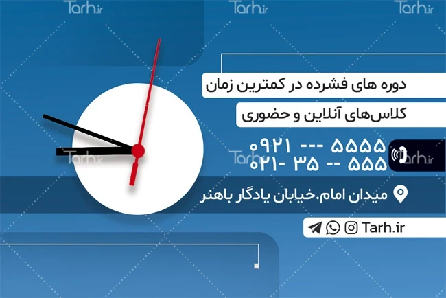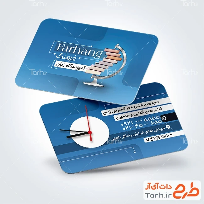طرح خام کارت ویزیت آموزش زبان دارای وکتور ساعت کد فایل 9845072