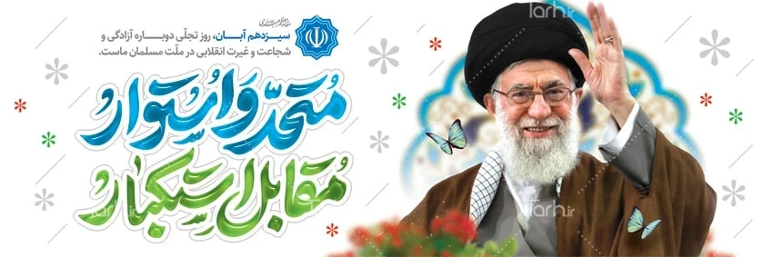 طرح لایه باز پلاکارد 13 آبان دارای عکس رهبری کد فایل 9851476