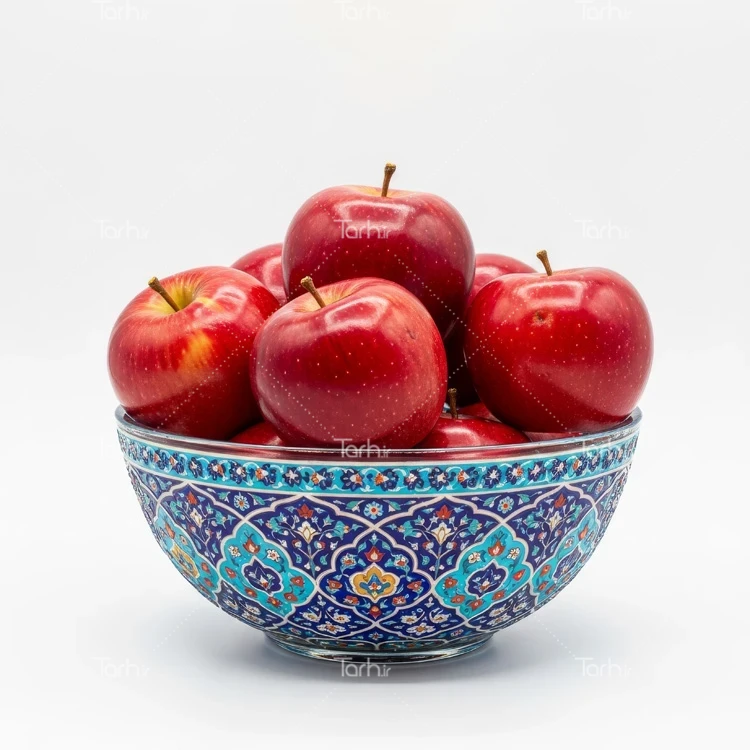 دانلود عکس استوک سیب قرمز در کاسه آبی سنتی کد فایل 1953760