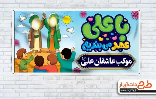 طرح لایه باز موکب عید غدیر با تایپوگرافی با علی عهد می بندیم