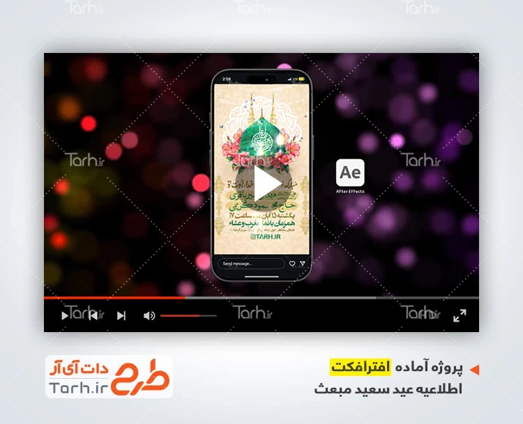 پروژه افترافکت اینستاگرامی اطلاعیه عید مبعث با کیفیت HD و با نرم افزار افترافکت ورژن سی سی 2025 ساخته شده است و قابل اجرا در ورژن CC 2014 به بالا می باشد. افترافکت اطلاعیه عید مبعث با فرمت aep و قابل ویرایش در نرم افزار افترافکت، به صورت لایه باز و بدون هیچ محدودیت و بدون نیاز به هیچ پلاگینی توسط تیم طراحان طرح دات آی آر طراحی شده است. پروژه افترافکت اینستاگرام تبریک عید سعید مبعث یک قالب ویدیویی آماده با زمان استوری (20) ثانیه و تعداد (30) فریم بر ثانیه، برای تیزر اینستاگرام اطلاع رسانی عید مبعث با لوگو و تبلیغات شما میباشد که استفاده از این پروژه بسیار ساده و آسان است. در پروژه اینستاگرام اطلاعیه جشن عید مبعث از تصاویر و المان های با کیفیت استفاده گردیده است، تمام المانهای استفاده شده در پروژه آماده اینستاگرام بعثت رسول اکرم قابلیت ویرایش، جابه جایی و تغییر سایز را دارا بوده و شما میتوانید متناسب با سلیقه خودتان پروژه تیزر اینستاگرام عید مبعث را ویرایش نمایید و با بهترین کیفیت خروجی بگیرید.