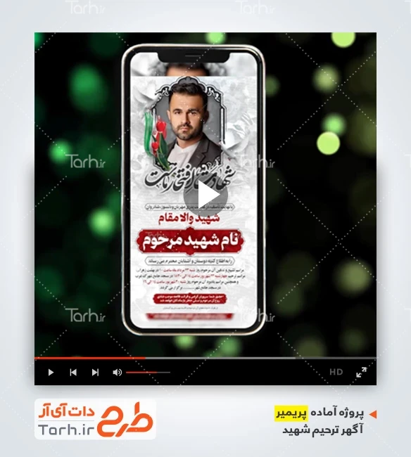 ریلز اینستاگرام آگهی ترحیم شهید با کیفیت HD و با نرم افزار پریمیر پرو (Adobe Premiere Pro 2022) توسط تیم طراحان طرح دات آی آر طراحی شده است. قالب پریمیر اعلامیه ترحیم شهید با فرمت PRPROJ و قابل ویرایش در نرم افزار پریمیر پرو می باشد که یک فایل ویرایشی با پسوند psd به همراه آن است. طبق آموزش ارائه شده استفاده از این پروژه بسیار ساده و آسان است، شما میتوانید پروژه پریمیر آگهی ترحیم شهید را با استفاده از فایل پی اس دی به راحتی و بدون داشتن دانشی در مورد پریمیر ویرایش کنید و در عرض چند دقیقه طرح مد نظر را شخصی سازی کرده و خروجی mp4 را از طریق پریمیر دریافت نمایید.قالب پریمیر آگهی ترحیم شهید یک قالب ویدیویی آماده با زمان 17 ثانیه می باشد. در پروژه ریلز اینستاگرام اعلامیه ترحیم شهید از تصاویر و المان های با کیفیت استفاده گردیده است، تمام المان های استفاده شده در پروژه آماده پریمیر اینستاگرام اعلامیه مراسم ترحیم شهید قابلیت ویرایش، جابه جایی و تغییر سایز را دارا بوده و شما می توانید متناسب با سلیقه خودتان پروژه تیزر اینستاگرام آگهی ترحیم شهید را ویرایش نمایید و با بهترین کیفیت خروجی بگیرید.