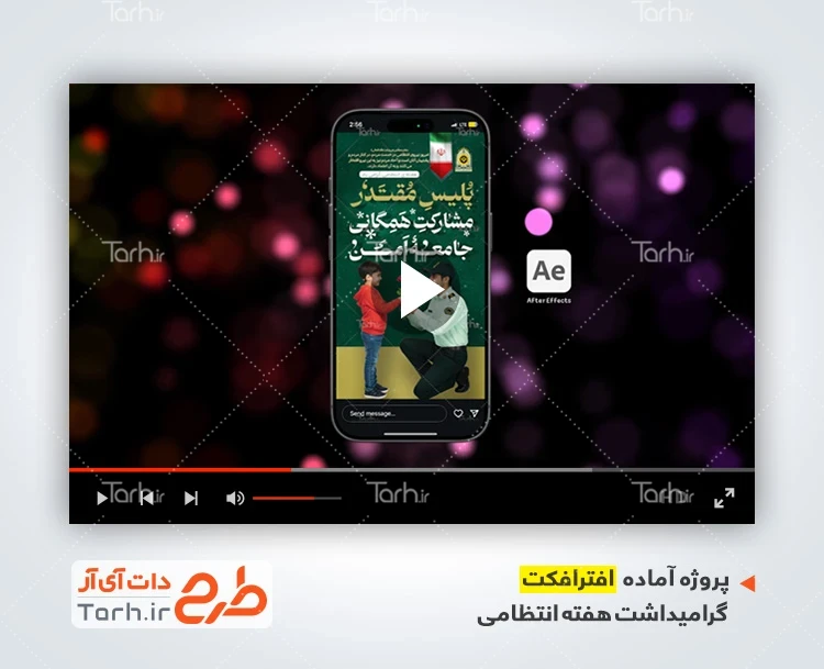پروژه آماده افتر افکت هفته نیروی انتظامی با کیفیت HD و با نرم افزار افترافکت ورژن سی سی 2025 ساخته شده است و قابل اجرا در ورژن CC 2014 به بالا می باشد. افترافکت اینستاگرام هفته نیروی انتظامی با فرمت aep و قابل ویرایش در نرم افزار افترافکت، به صورت لایه باز و بدون هیچ محدودیت و بدون نیاز به هیچ پلاگینی توسط تیم طراحان طرح دات آی آر طراحی شده است. پروژه افترافکت اینستاگرام هفته نیروی انتظامی یک قالب ویدیویی آماده با زمان استوری (20) ثانیه و تعداد (30) فریم بر ثانیه، برای تیزر اینستاگرام هفته نیروی انتظامی با لوگو و تبلیغات شما می باشد که استفاده از این پروژه بسیار ساده و آسان است. در افتر اینستاگرام هفته نیروی انتظامی از تصاویر و المان های با کیفیت استفاده گردیده است، تمام المان های استفاده شده در پروژه آماده اینستاگرام روز نیروی انتظامی قابلیت ویرایش، جابه جایی و تغییر سایز را دارا بوده و شما می توانید متناسب با سلیقه خودتان پروژه تیزر اینستاگرام روز پلیس و نیروی انتظامی را ویرایش نمایید و با بهترین کیفیت خروجی بگیرید.